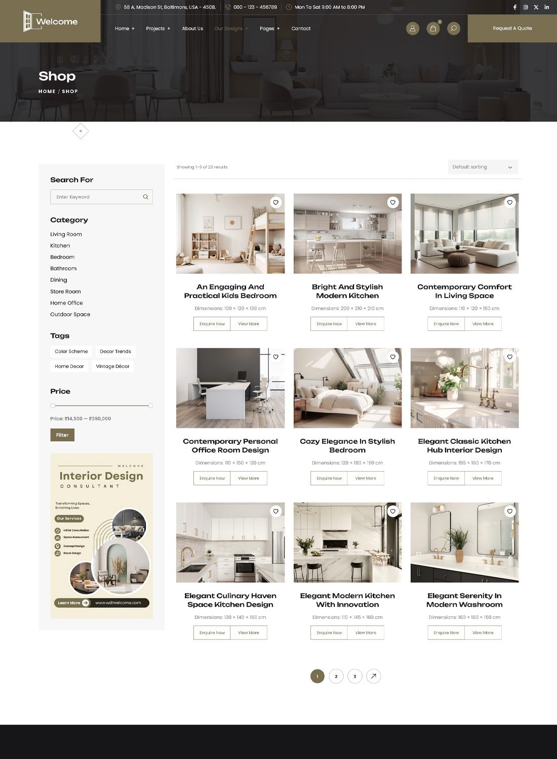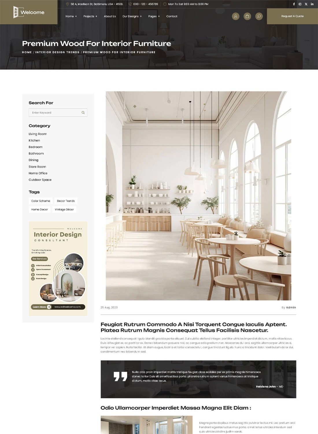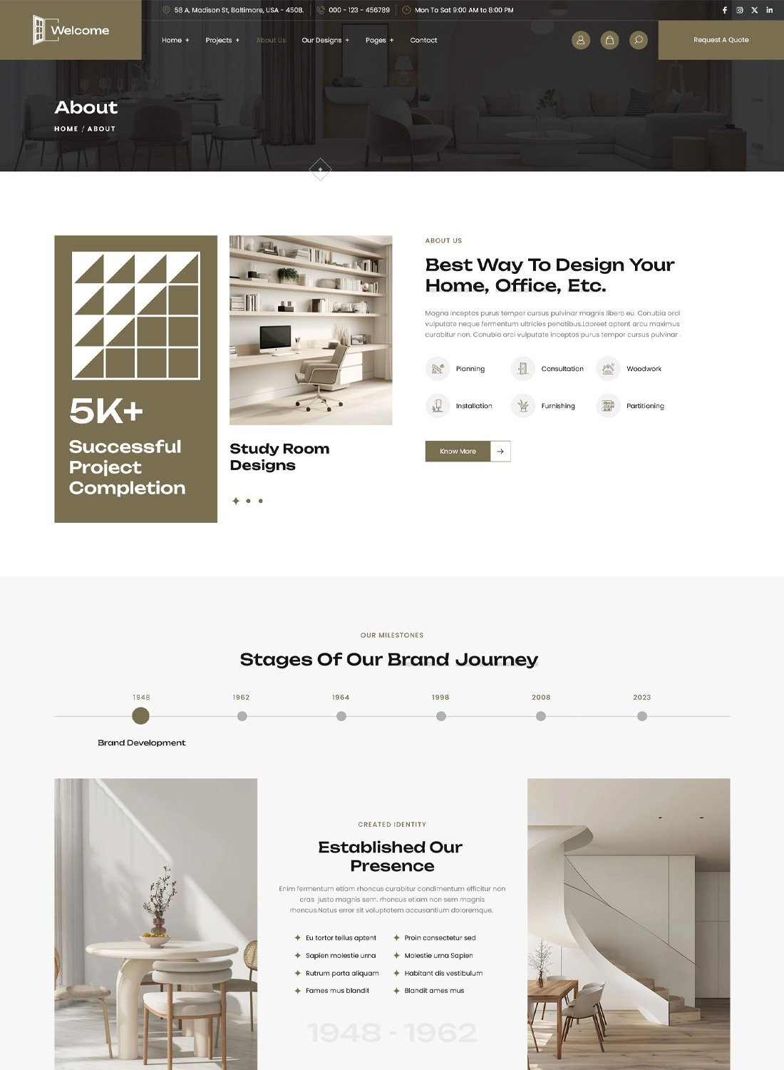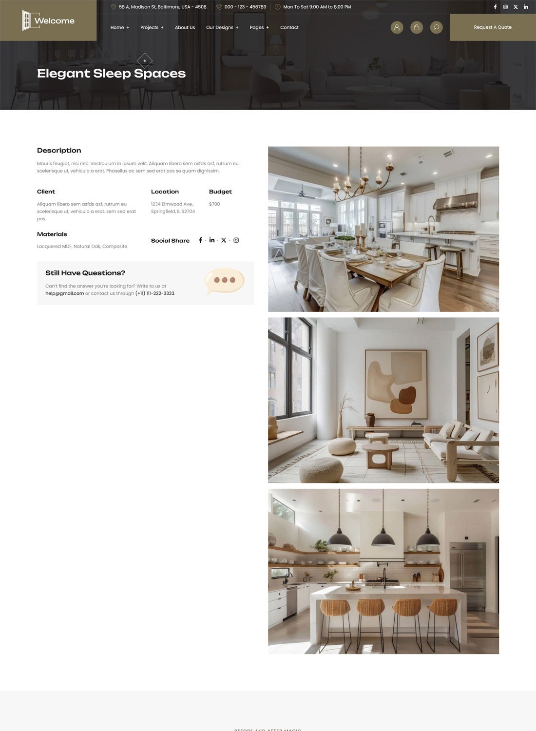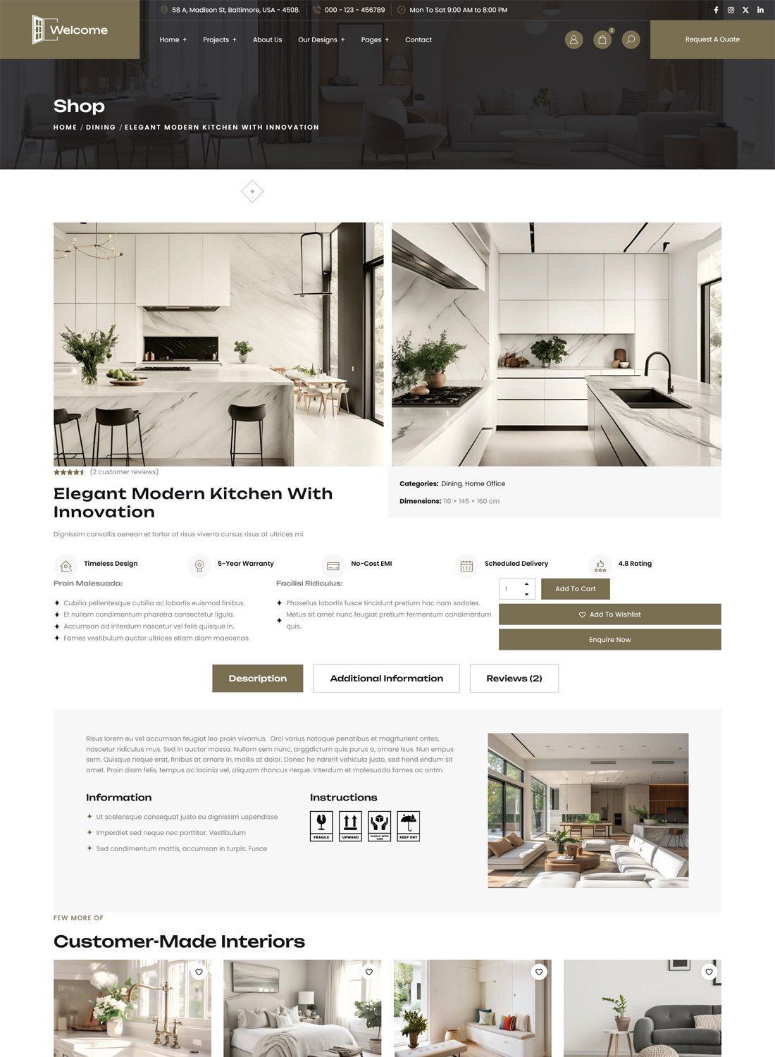 The flexible customization funtionality of the theme allows you to create every type of home interiors, furniture, and contruction related product websites.